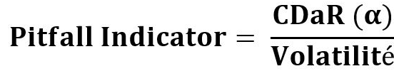 Le « Pitfall Indicator » proposé par la société KeyQuant[3] vise à estimer les mauvaises surprises que l’investisseur pourrait subir. Il s’appuie sur les notions de « Drawdown at Risk » (DaR) et de « Conditional Drawdown at Risk » (CDaR)[4],[5].