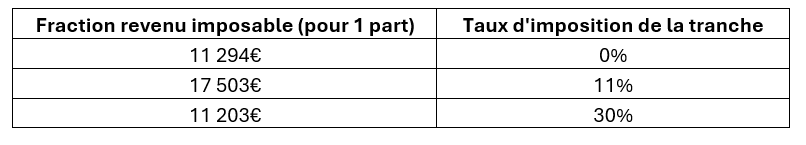 Détails issus de l’application du barème de l’impôt pour 2024 :