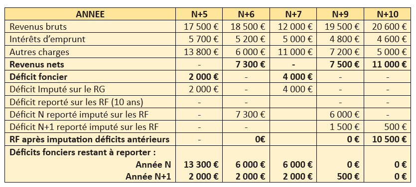 Sort et suivi du déficit foncier – Partie 2